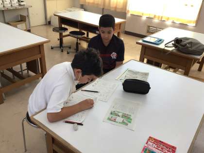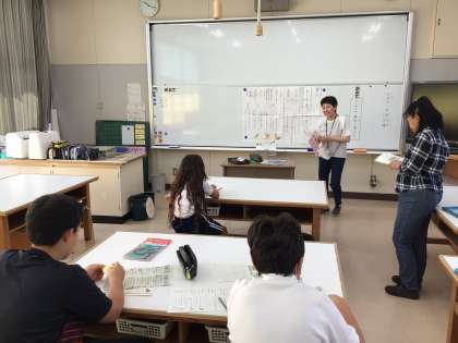4年1組の授業と同じところを国際学級で学習をしています。漢字の読み方なども確認をしながらことわざなどを勉強しました。