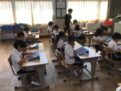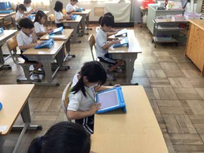 9/11 1年生国語 公開日 2024/09/11 更新日 2024/09/11 各学年から 1年生国語では、漢字の練習を学習用タブレットのキュビナを使って学習しました。一人一人、たくさん問題をとく姿が見られました。