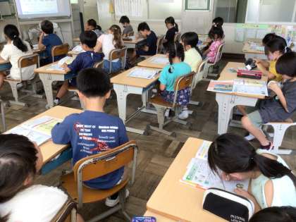 3年生理科では、ヒマワリやホウセンカの育ち方についてまとめました。二つの植物を比べてノートに書きました。