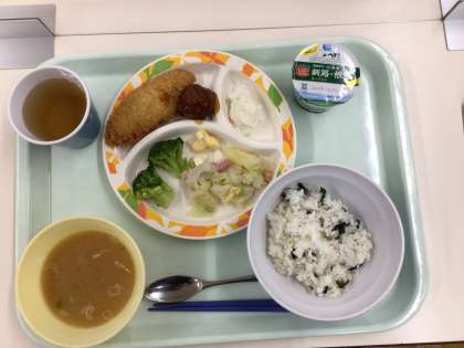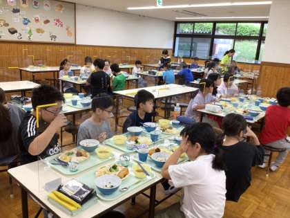 9/12 5年生キャンプ 朝食 公開日 2024/09/12 更新日 2024/09/12 各学年から どんぐり食堂で朝食です。食事係が盛りつけを担当しました。慣れない場所でも、普段の給食の準備の成果を出し、手際よく準備をすることができました。なかなかボリュームのあるメニューです。