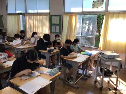今日も8時30分になると静かに読書が始まりました。落ち着いた雰囲気がいいですね。