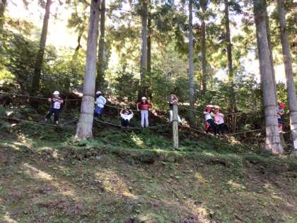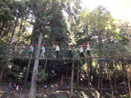 9/12 5年生キャンプ アスレチック1 公開日 2024/09/12 更新日 2024/09/12 各学年から 気温が上がってきて、アスレチックの実施が心配されましたが、何とか実施することができ、子どもたちは大喜び。山の中のアスレチックは涼しく、気持ちよく遊ぶことができました。