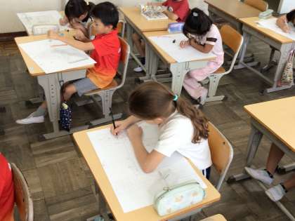 9/12 3年図工 公開日 2024/09/12 更新日 2024/09/12 各学年から 3年図工では、「あの日あのときの気持ち 絵をかこう」というテーマで絵を描いています。アイデアスケッチをもとに画用紙に下書きをしているところです。後日絵の具で色をつけていくので、完成が楽しみですね。