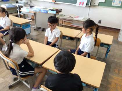 「どっちをえらぶ」のお題に沿って、ペアもしくはグループで会話をしています。自分の考えを伝える力が少しずつですがついてきています。楽しく進めている様子がわかります。