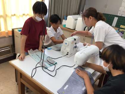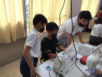 6年家庭科では、トートバッグを作っています。先生から全体説明を受けた後、ミシンを使って縫っていました。どんなトートバッグに仕上がるのか楽しみですね。
