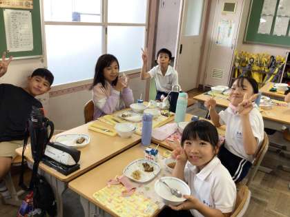 9/13 楽しい給食 公開日 2024/09/13 更新日 2024/09/13 各学年から 今日の給食に「月見だんご」が出ました。「色が前と違う」「おいしい」と喜んで食べていました。どの学級も友達と楽しく会食していました。