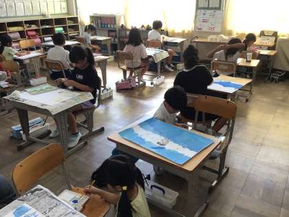 9/17 2年生図工 公開日 2024/09/17 更新日 2024/09/17 各学年から 2年生の図工では、夏休みの思い出について画用紙に描きました。いろんなところに出かけたことや、夏休みに頑張ったこと等を絵の具とクレヨンで描きました。