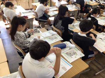 4年理科では、「ふった雨がどこへいくのか考えよう」というめあてで学習を進めていました。写真資料を見ながら気づいたことをまとめていました。