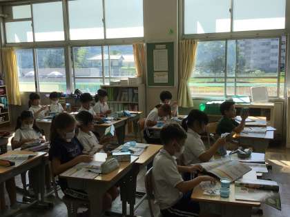 9/17 3年生理科 公開日 2024/09/17 更新日 2024/09/17 各学年から 3年生理科「音のふしぎ」では、音の大きさと物のふるえ方について学習しました。音が出ているものに触れると、どのようになるか予想し実験しました。