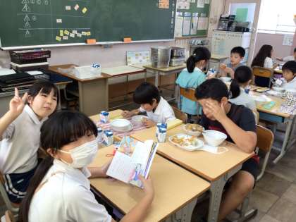 9/17 楽しい給食 公開日 2024/09/17 更新日 2024/09/17 各学年から 3連休明け友達と楽しく会話が弾みながら会食をしています。準備や片付けも手際よくできるので、ゆったりと会食の時間が確保できていいですね。