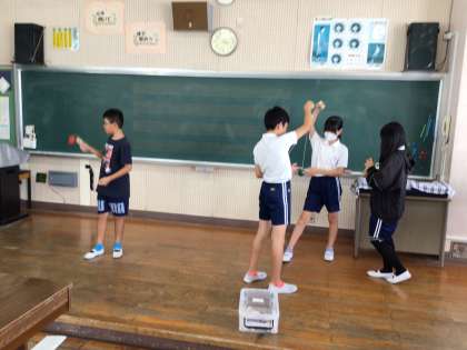 総合スポーツクラブは今日は体育館が暑すぎて活動できないので、室内でレクリエーション的な活動をしていました。