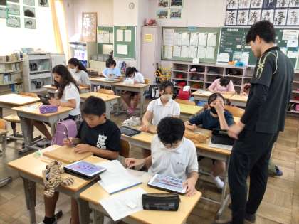 クラフトクラブでは、消しゴムはんこ作りをしています。慎重に彫り進めていました。