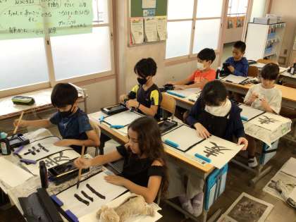 9/19 4年書写 公開日 2024/09/19 更新日 2024/09/19 各学年から 4年書写では、前回に引き続き「麦」を練習しました。前回のポイントをおさらいした後、さらに字のバランスを考えた書き方について説明をしました。なかなか難しいけれど、ポイントを意識して書き上げていました。