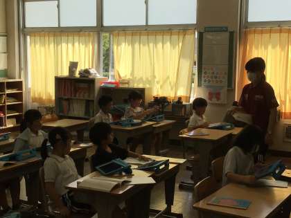 9/20 2年生国語1 公開日 2024/09/20 更新日 2024/09/20 各学年から 2年生の国語では、「絵を見てお話を書こう」の学習をしています。今日は、学習用タブレットをつかって、どんなお話なのか考えました。