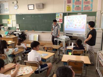 今日の3年生の外国語活動では、ALTの先生と一緒に、食べ物で何が好きかを尋ねる学習しました。食べ物の単語の練習をしたり、友達と聞き合ったりしました。