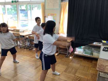 9/20 7・8組体育 公開日 2024/09/20 更新日 2024/09/20 各学年から 7・8組体育では、準備体操の後、すうじ体操、平井体操をやりました。今日はラジオ体操第2にもチャレンジしました。さらにソーラン節も踊るなど元気よく運動ができました。