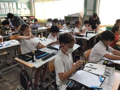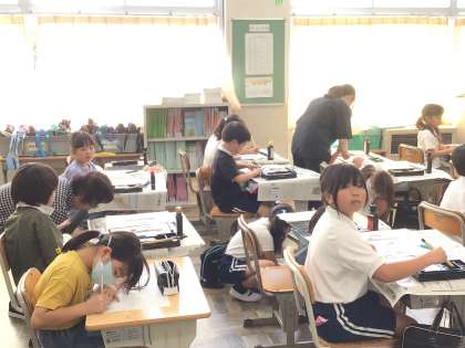 9/20 3年生書写 公開日 2024/09/20 更新日 2024/09/20 各学年から 3年生書写では、「小」の漢字を書きました。書写ボランティアの方にも教えて頂きながら、上手に書くことができました。