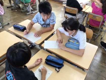 9/21 授業参観5年道徳 公開日 2024/09/21 更新日 2024/09/21 各学年から 5年道徳では、「喜びの形について考えよう」をテーマに学習を進めていました。ワークシートに自分の意見をまとめた後、班で話し合っていました。