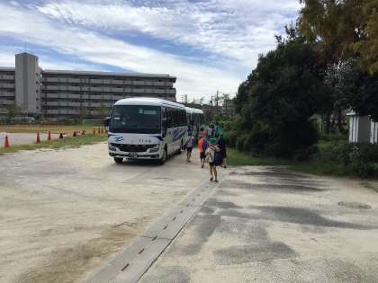 今日は3年生の最後のプールの日です。1年生と入れ替わりでバスに乗車して豊田スイミング平芝校へ向かいました。