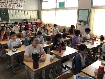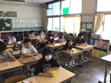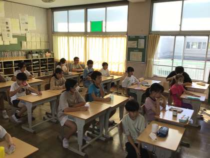 毎週木曜日の朝はフッ化物洗口です。リズミカルな曲に合わせてブクブク洗口しています。