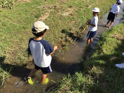 9/26 2年岩本川探検3 公開日 2024/09/26 更新日 2024/09/26 各学年から 川に入るとすぐに「カエルがいた」「ザリガニ見つけた」などの声があがりました。夢中になってどんな生き物がいるのか探しました。