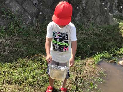 夢中になって岩本川を探検しています。
