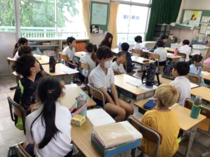 4年生のえがおタイムの様子です。人の話を頷きながら聴くことを意識して進めていました。