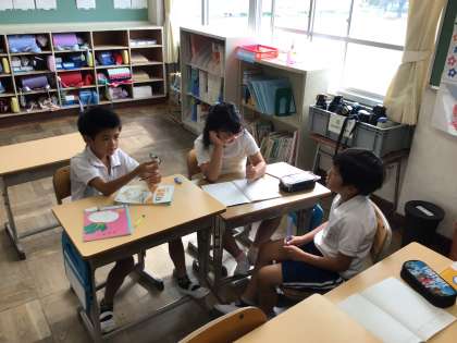2年算数では、「いろいろな考え方をしてみよう」というめあてで学習を進めていました。求め方が1通りではない文章題を意見を交わしながら考えました。