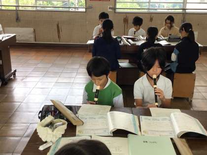 9/27 4年音楽 公開日 2024/09/27 更新日 2024/09/27 各学年から 4年音楽では、「リズムアンサンブルを楽しもう!」というめあてで学習を進めました。強弱記号があることを学んだので、手拍子の打ち方を変えていました。グループでも練習をしてだいぶ慣れてきました。リコーダーもスタッカートとそうでない部分の違いを感じながら練習を始めました。