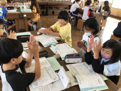 9/30 4年音楽 公開日 2024/09/30 更新日 2024/09/30 各学年から 4年音楽では、「リズムアンサンブルを楽しもう」というめあてで学習をしました。強弱記号を確認をした後、グループで練習をしました。以前より他パートに惑わされることが少なくなって来ました。これからもリズム練習をがんばっていきましょう。