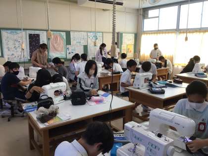 10/1 6年生家庭科 公開日 2024/10/01 更新日 2024/10/01 各学年から 6年生家庭科では、修学旅行に持っていく「トートバック作り」の実習をしています。今日は、トートバックの持ち手の部分を付けたり、サイドの部分をミシンで縫ったりしました。あともう少しで完成するので楽しみです。