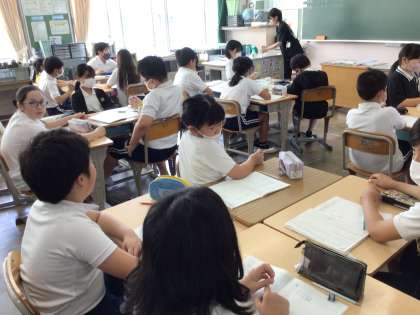 10/1 5年生算数2 公開日 2024/10/01 更新日 2024/10/01 各学年から 今日の5年生の算数では、前時の復習をしてから、倍数について学習しました。問題について、グループで話し合い活動をしながら、解いていきました。