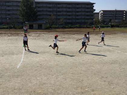 10/2 6年体育 公開日 2024/10/02 更新日 2024/10/02 各学年から 6年体育では、やまびこフェスティバルに向けてリレーの練習を始めていました。猛暑が続いていたので、久しぶりに運動場で体育を実施することができましたね。昨日相談して決めた走る順番で試すことができたのかな?