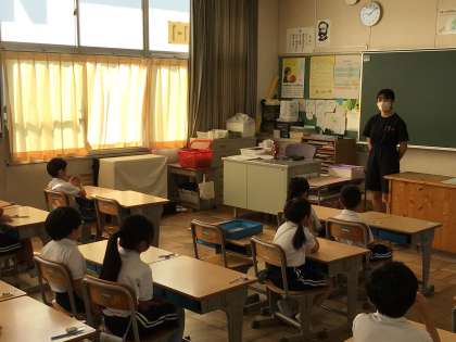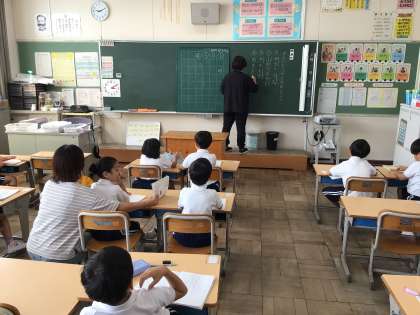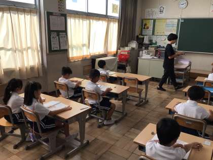 1年国語では、教科書を1文ずつ順番に読んだり、漢字を練習したりしていました。よい姿勢で落ち着いて授業を受けていて素晴らしいですね。また、今日は美里中の2年生の生徒が職場体験学習で来校しています。多くの中学校で職場体験学習を実施しています。