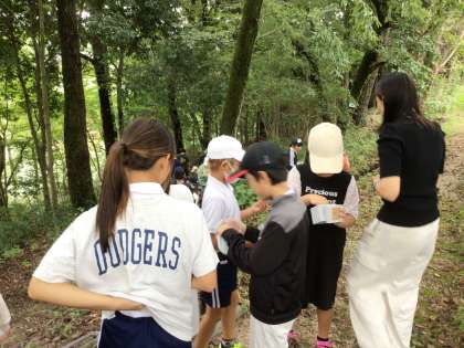 10/4 4年生どんぐり拾い 公開日 2024/10/04 更新日 2024/10/04 各学年から 今日は、やまびこの森に行き、どんぐりごま大会に向けて、どんぐり拾いをしました。きれいな形で、よくまわりそうなどんぐりを選んで拾いました。拾ったどんぐりでどんぐりごまを作りました。