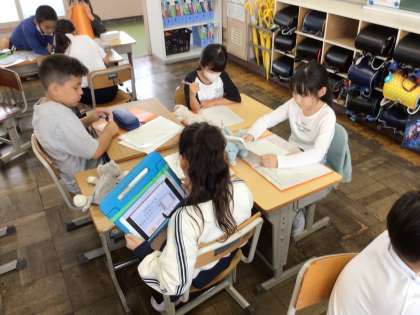 10/4 4年生総合的な学習 公開日 2024/10/04 更新日 2024/10/04 各学年から 4年生の総合的な学習の時間では、岩本川について学習しています。岩本川について、5年生に質問することなどを、グループで話し合いました。