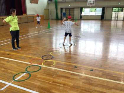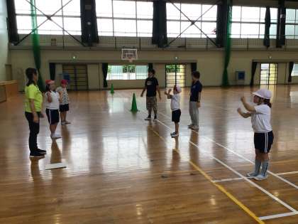 7・8組体育では、久しぶりに体育館で活動を行いました。準備体操の後、5分間走、ケンケンパ、なわとびなどをしました。一生懸命活動ができました。