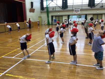 10/4 1、2年生体育 公開日 2024/10/04 更新日 2024/10/04 各学年から 今日の5時間目に、体育館で1、2年生体育を行いました。準備体操をして、運動会で行うボール運びの練習をしました。各クラスごとにサッと素早く並ぶ姿が見られました。