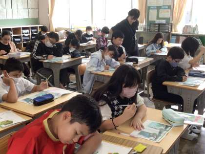 10/7 5年生理科 公開日 2024/10/07 更新日 2024/10/07 各学年から 5年生の理科では、川の流れについての学習をしています。川の写真を見て、どのような変化や違いがあるかを考え、ノートにまとめました。