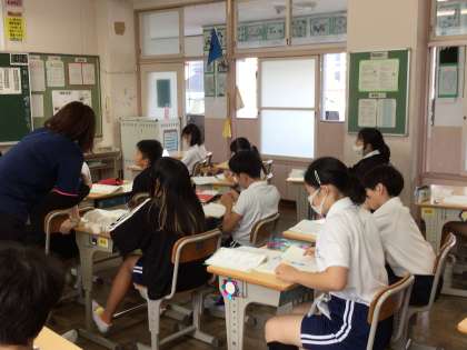 体積の学習で、いろいろな体積の求め方を考えました。底面積や高さから、式を考え求めることができました。