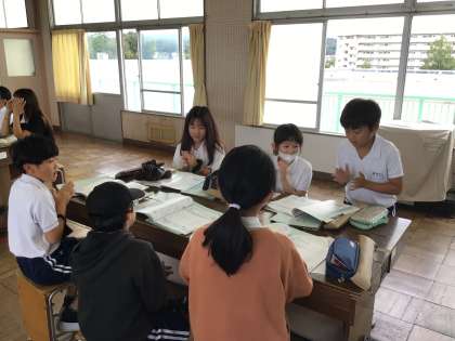 10/8 4年音楽 公開日 2024/10/08 更新日 2024/10/08 各学年から 4年音楽では、リズム練習も少しずつ慣れてきたので、互いのリズムを聴きながらグループで練習を行いました。「陽気な船長」の2番パートも練習を始めたので、リコーダーアンサンブルが楽しみになってきました。