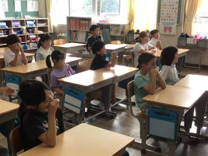 10/8 2年生生活科 公開日 2024/10/08 更新日 2024/10/08 各学年から 2年生の生活科では、岩本川の生き物について学習しています。1年生に紹介するために、岩本川の生き物を画用紙に描きます。今日は、どのように描くとよいかを考えました。