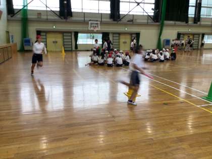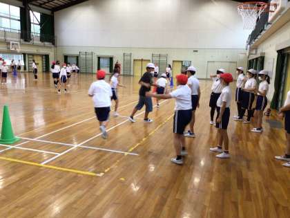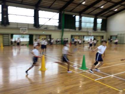 10/9 6年体育 公開日 2024/10/09 更新日 2024/10/09 各学年から 6年体育では、体育館でリレーの練習をしていました。走る順を確認しながらバトンパスをしていました。今日は残念ながら雨だったので運動場が使えなかったので、後日運動場で練習ができるといいですね。