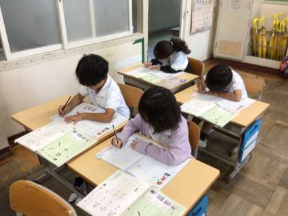 今日の2年生の書写では、「点」の方向に気をつけて書きました。「音、小、点」などの漢字を正しい姿勢でていねいに書くことができました。