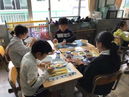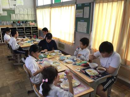 10/9 楽しい給食1 公開日 2024/10/09 更新日 2024/10/09 各学年から 今日は子どもたちの大好きなハヤシライス、ナタデココポンチです。友達との会話も弾みながら楽しく食べていました。
