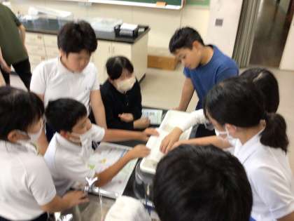 10/9 5年理科 公開日 2024/10/09 更新日 2024/10/09 各学年から 5年理科では、「流れる水のはたらきや量によるちがいを見つけよう」というめあてで学習を進めていました。実験方法について先生の説明を聞く姿勢がよかったです。実験はうまくいったかな?