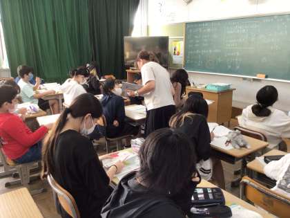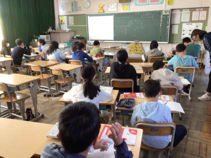 10/10 6年生算数1 公開日 2024/10/10 更新日 2024/10/10 各学年から 今日の6年生算数は、3つに分かれ少人数で行いました。「比とその利用」について学習しています。比が等しいのか考えたり、比が等しいことを見つけたりしました。