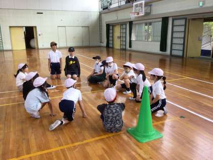 10/10 3、4年生体育 公開日 2024/10/10 更新日 2024/10/10 各学年から 今日の5時間目の体育では、3年生と4年生が合同で体育をやりました。4年生が中心となって、グループに分かれて、踊りを考えました。
