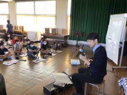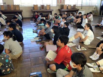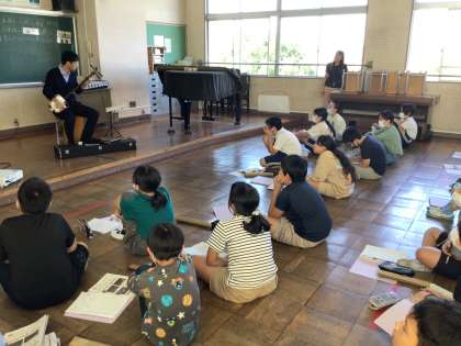 映像で演奏したものを見聞きしながら生演奏をして二重奏にするというスゴ技でした。5年生は貴重な生演奏を集中して聴くことができました。演奏後はたくさん質問をしたり、感想を述べたりしていました。