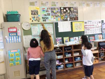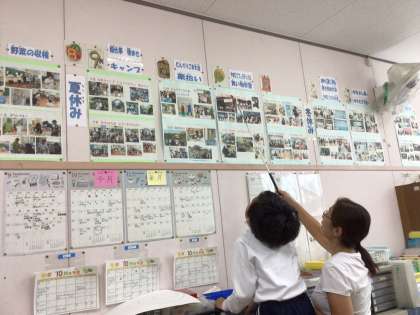 今日の5時間目は、前期最後の時間です。7、8組では、前期を振り返り、後期はどんなことがあるか考えました。